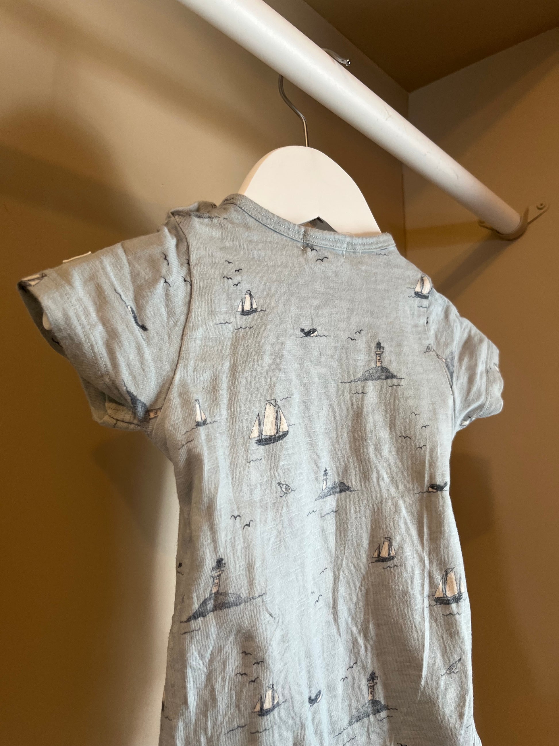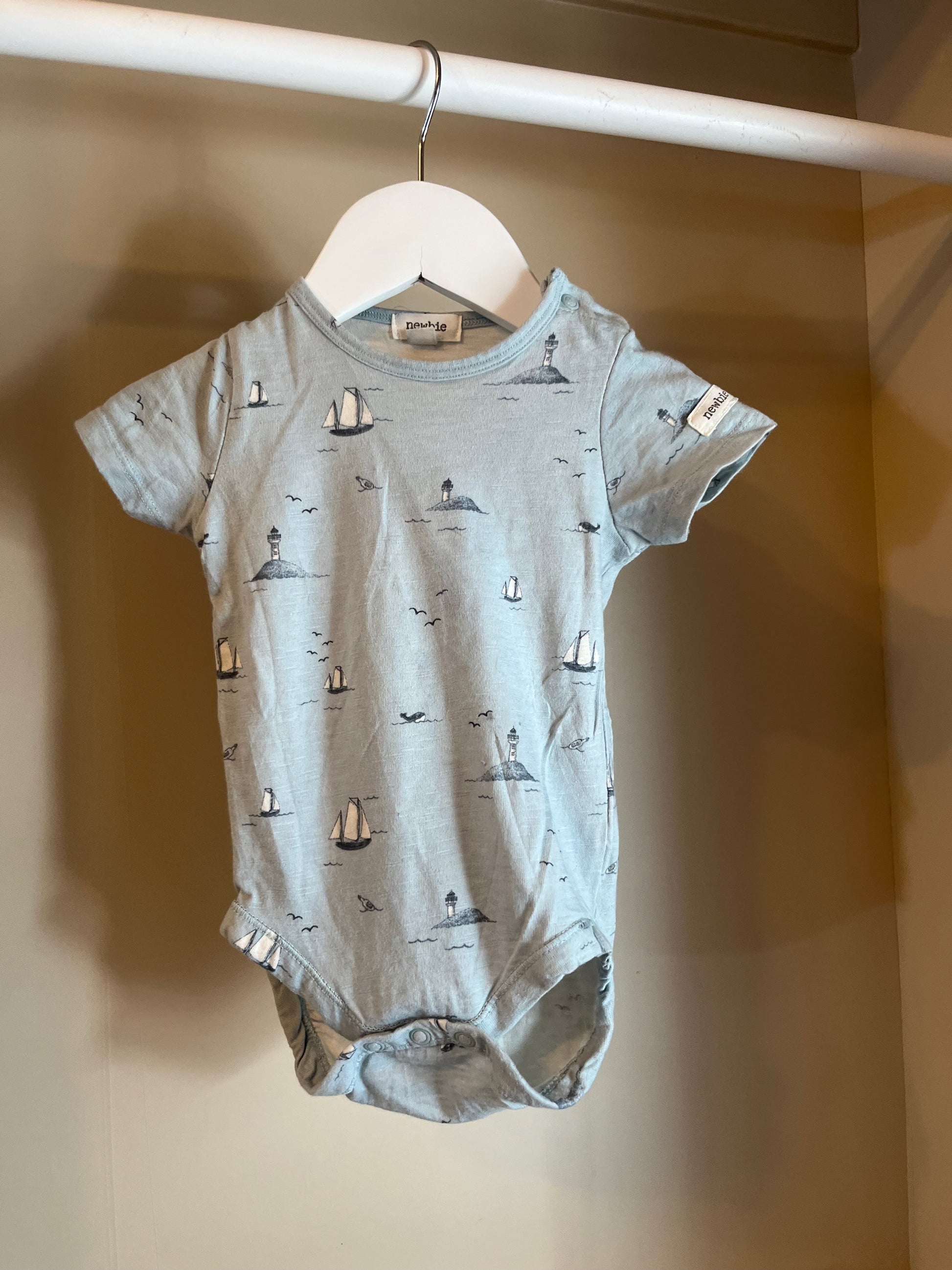 Somrig och söt blå kortärmad body från Newbie med fint båtmotiv. Perfekt för varma dagar och mjuk mot barnets hud.