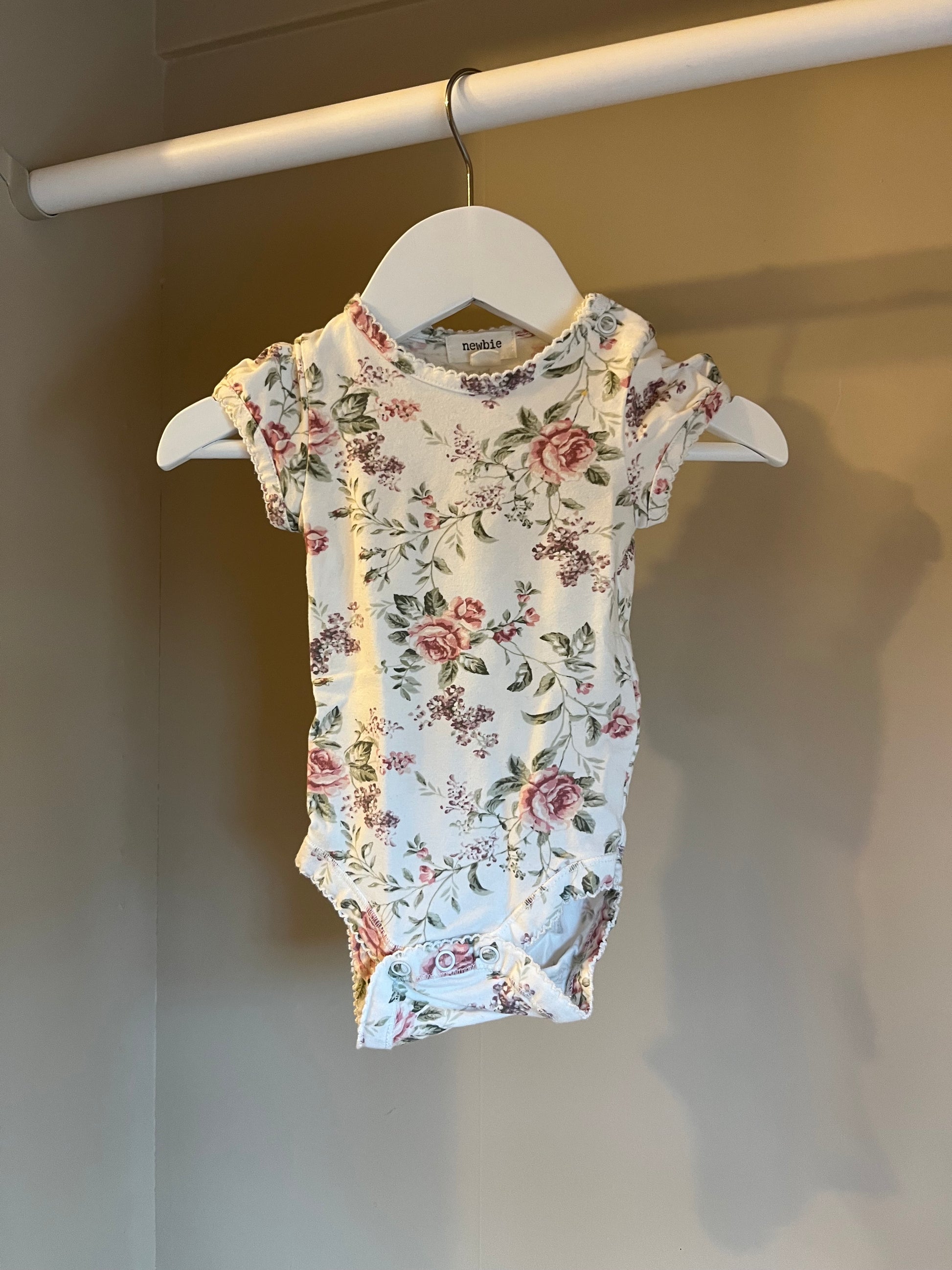 Lätt och mjuk body med härligt blommönster – perfekt för varma sommardagar. Från Newbie, med bekväm passform och söt design som passar både lek och vila.