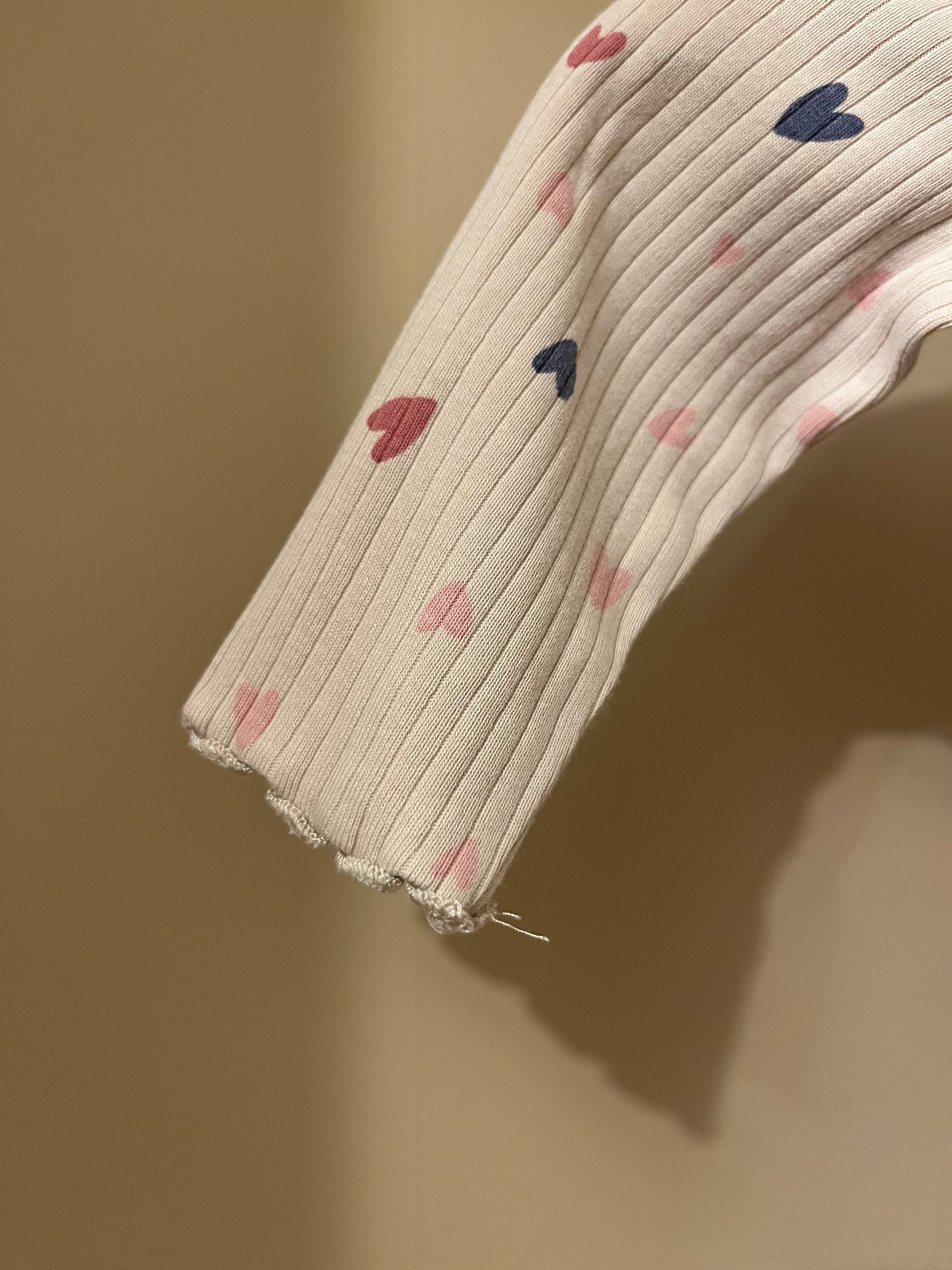 Söt ribbad body i beige med små hjärtan. Perfekt både till vardag och finare tillfällen.