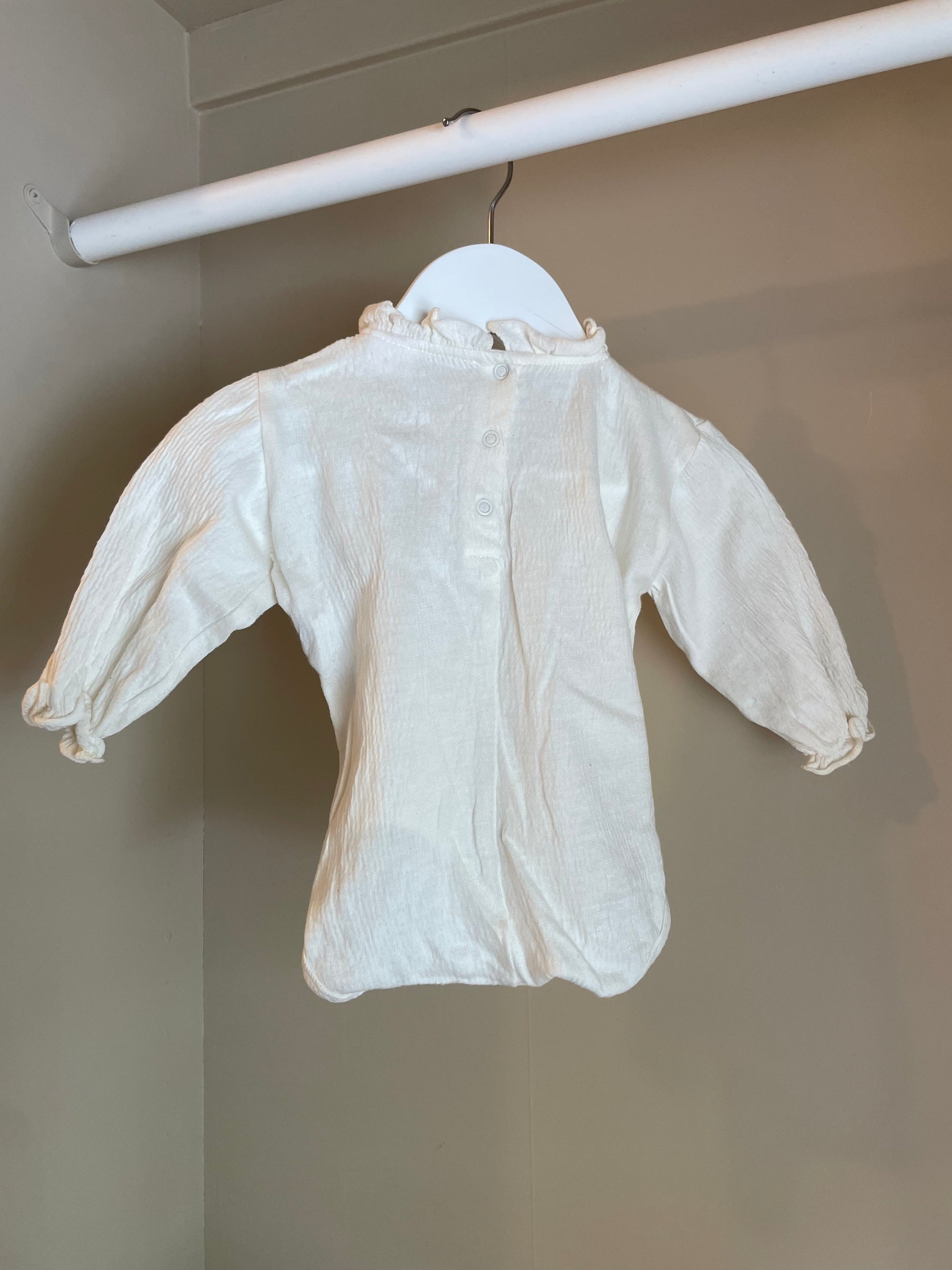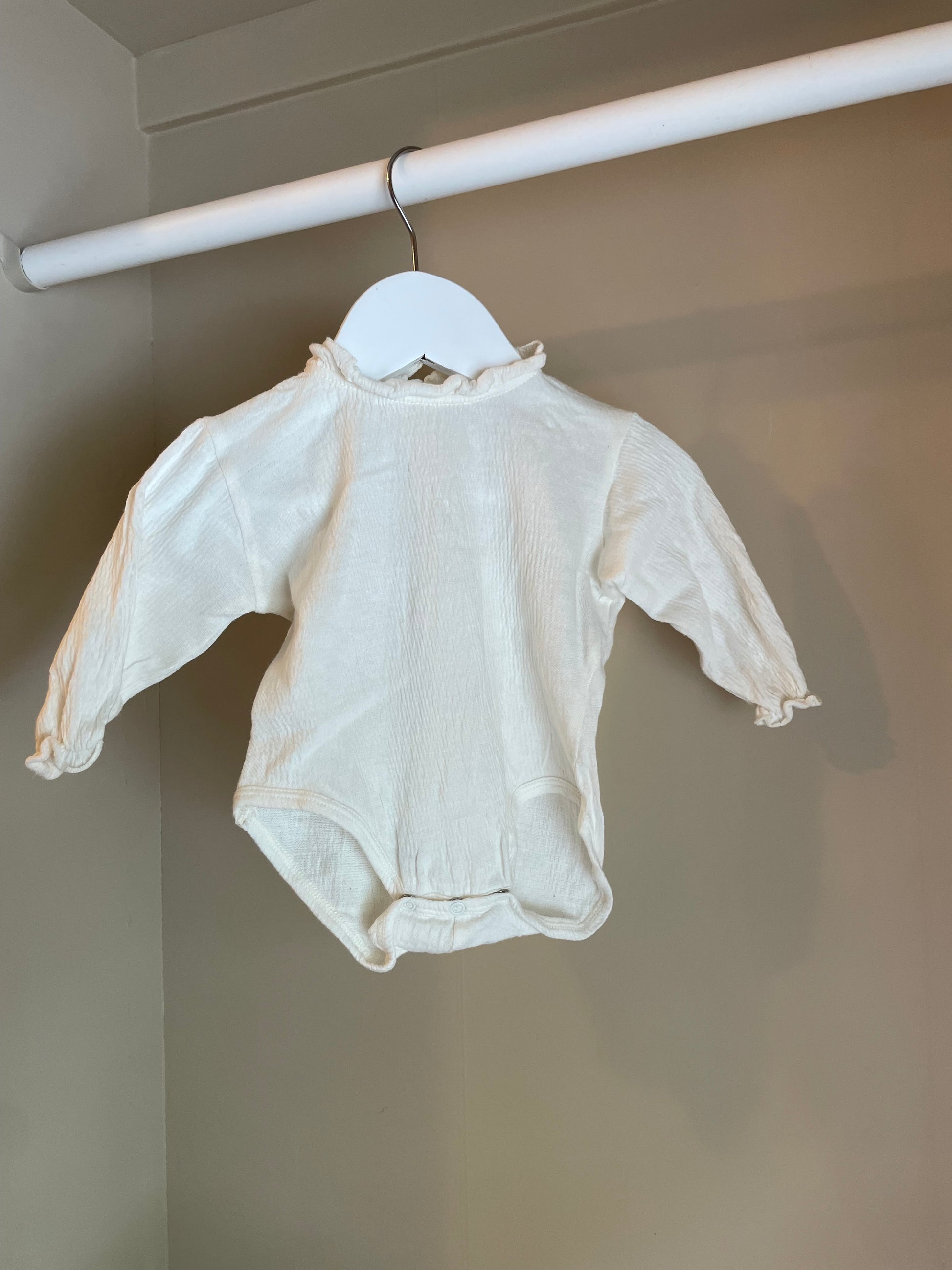 Mjuk och bekväm body i följsamt tyg, med lång ärm och söt krage som ger en klassisk look. Från Zara – perfekt för både vardag och finare tillfällen.