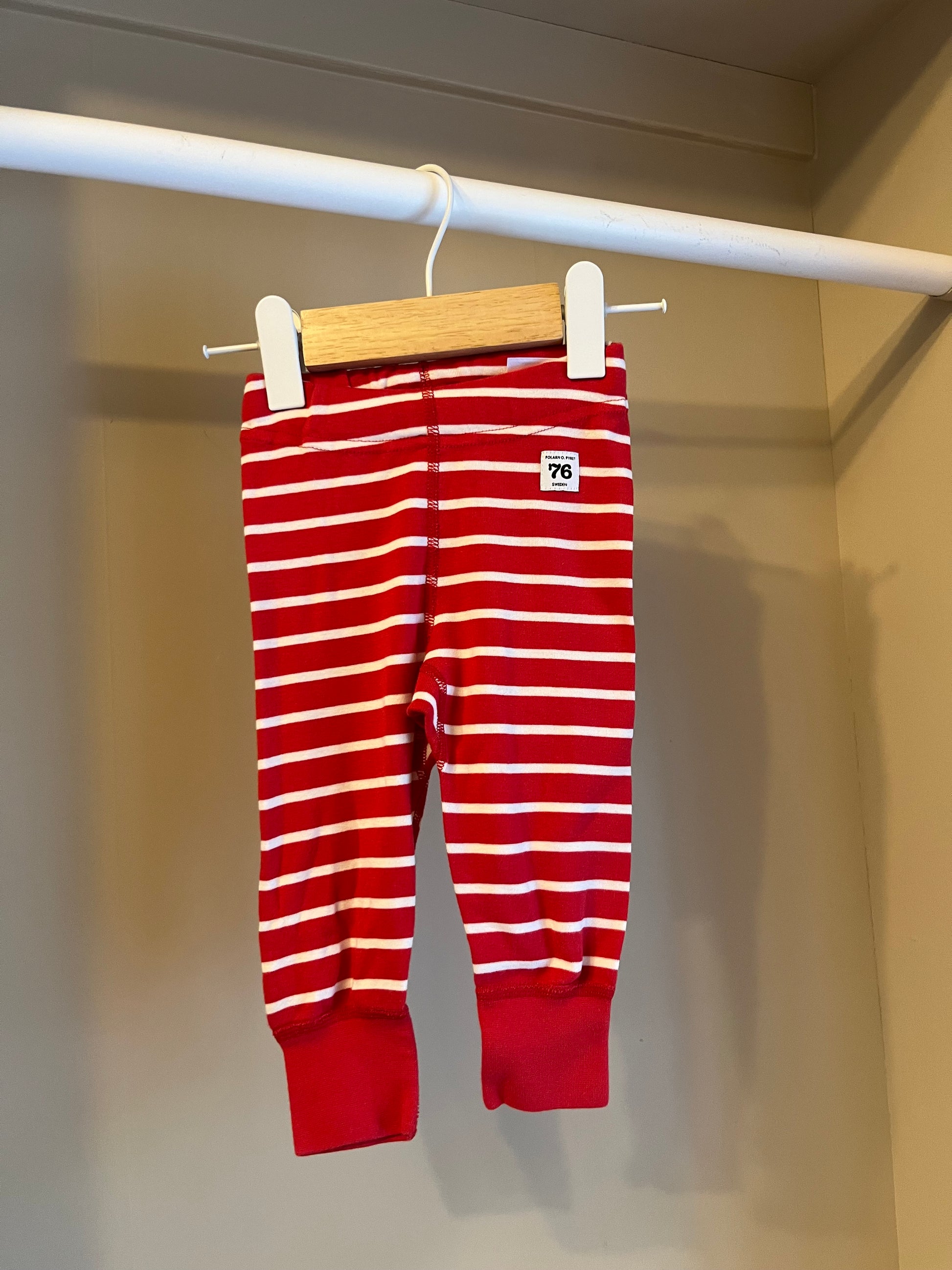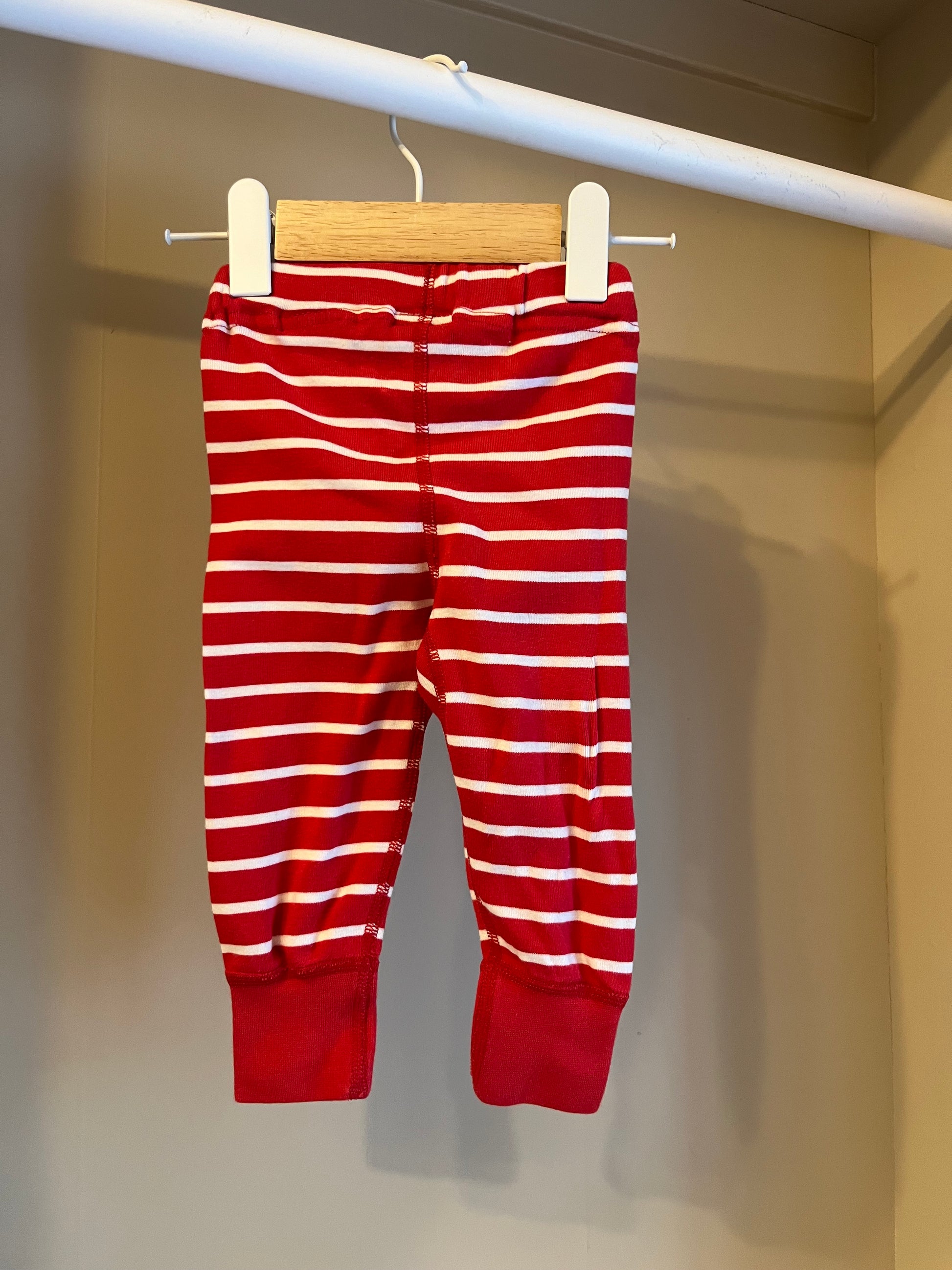 Klassiska byxor med vita och röda ränder, designade i mjuk och skön bomull. Elastisk midja med knytband gör byxorna enkla att justera efter kroppen för en bra passform. Perfekta för både lek och vardag – komfort och stil i samma plagg.