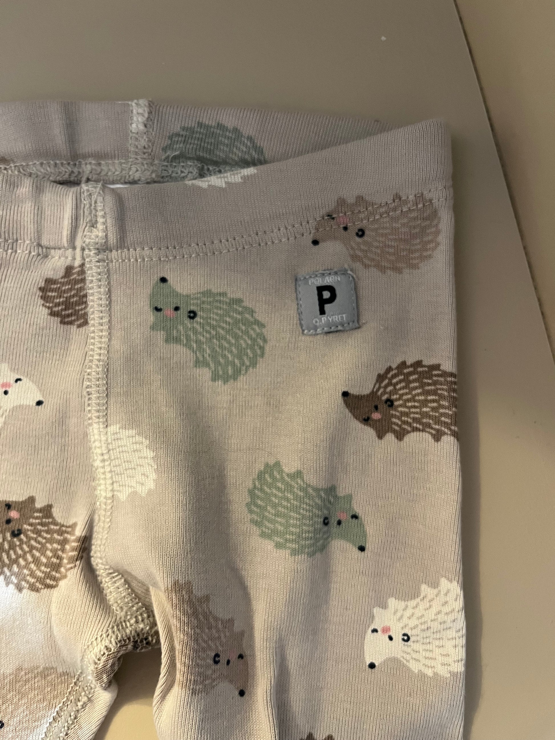 Supersköna byxor i mjuk beige ton, prydda med charmiga små igelkottar. Perfekta för lek, vila och allt däremellan. Resår i midjan för enkel påklädning och skön passform.