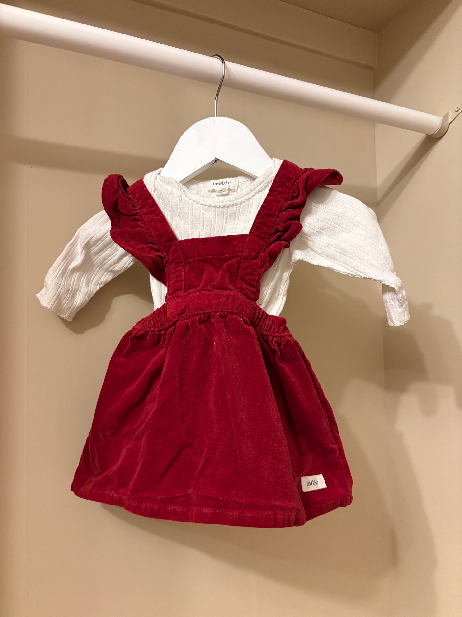 Hängselklänning röd stl 56 (1-2 mån) - Newbie