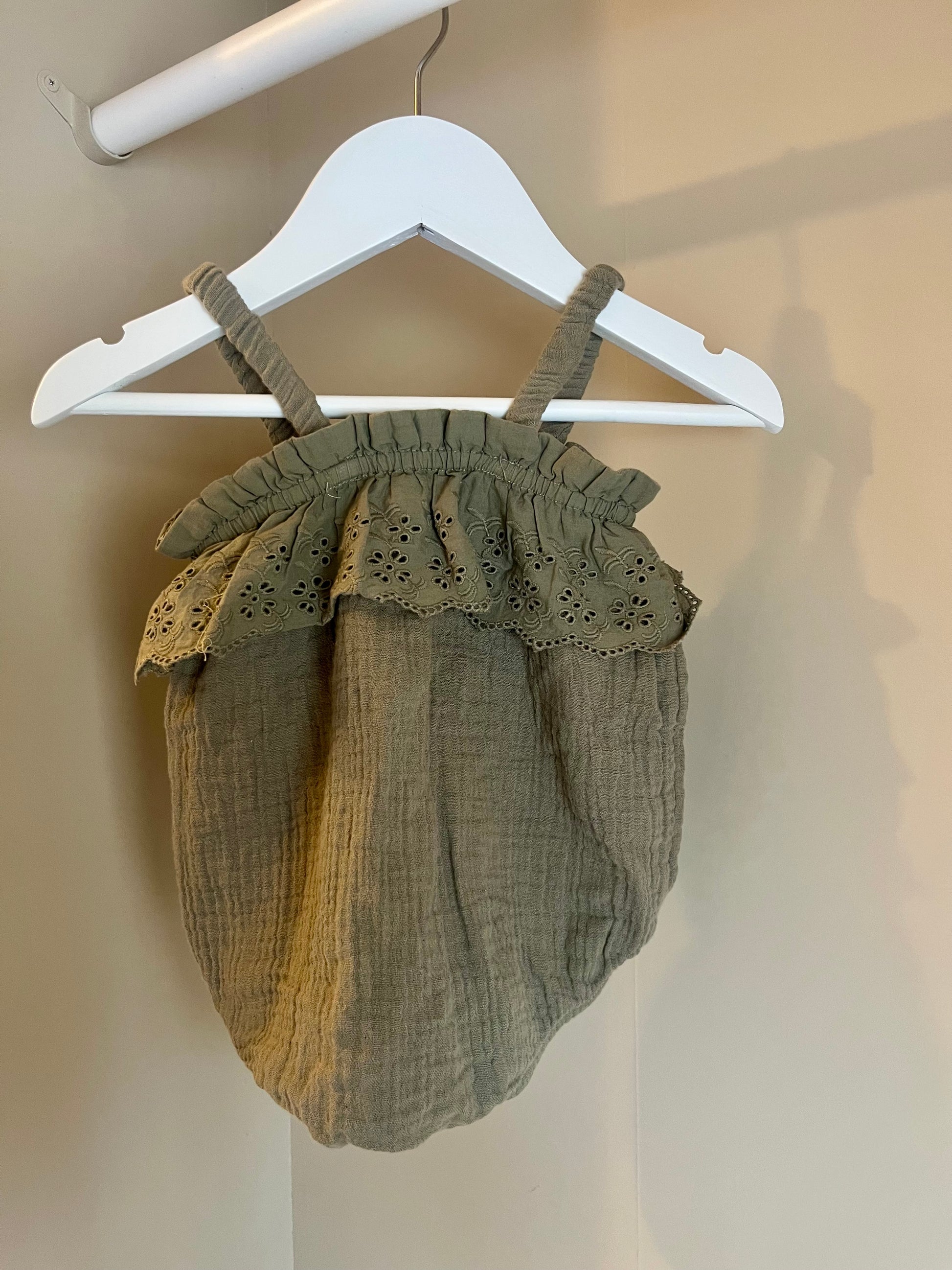 Skön jumpsuit i fin grön färg, i muslintyg.