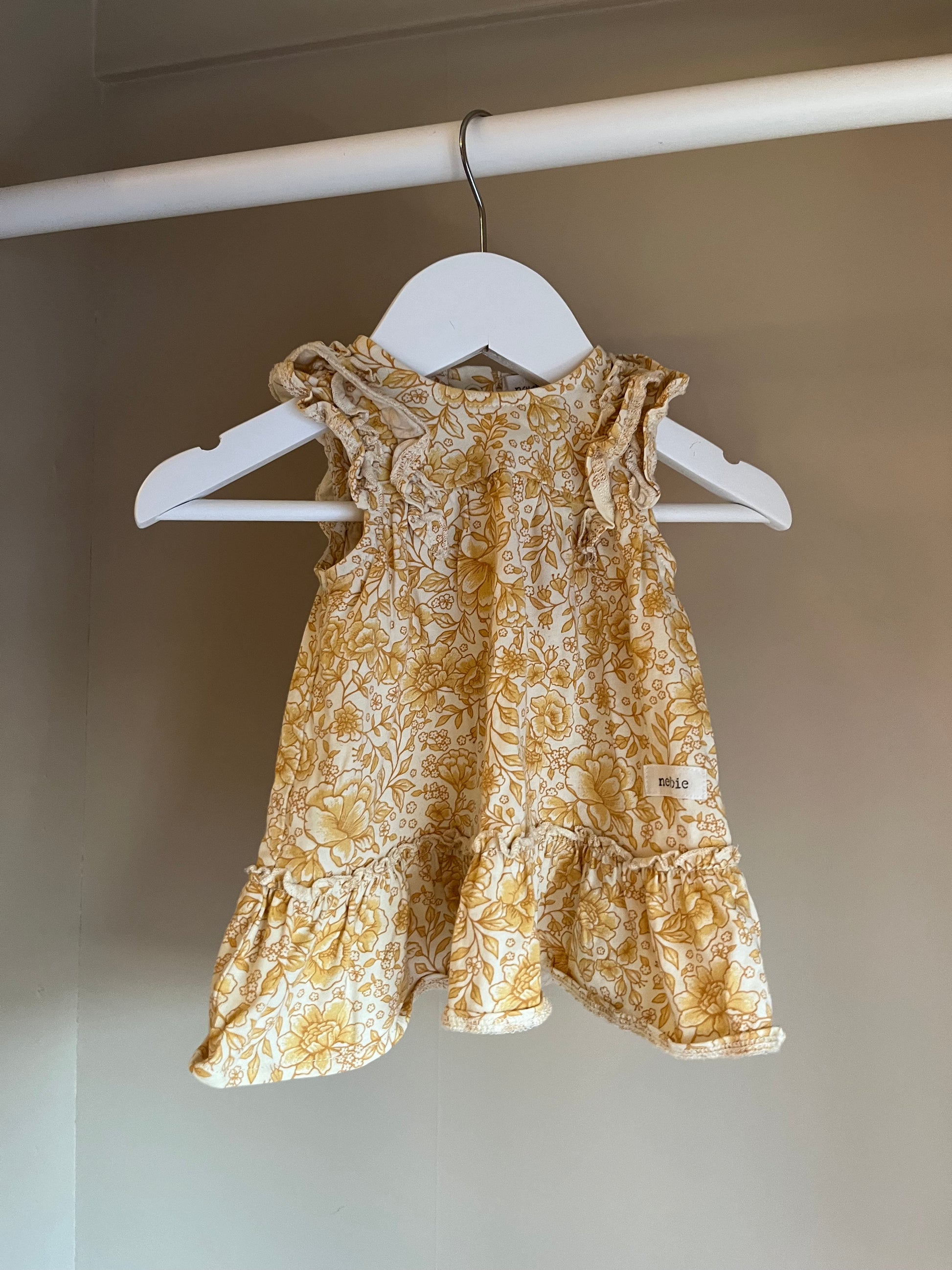 Klänning gul/vit mönster stl 56 (1-2 mån) - Newbie
