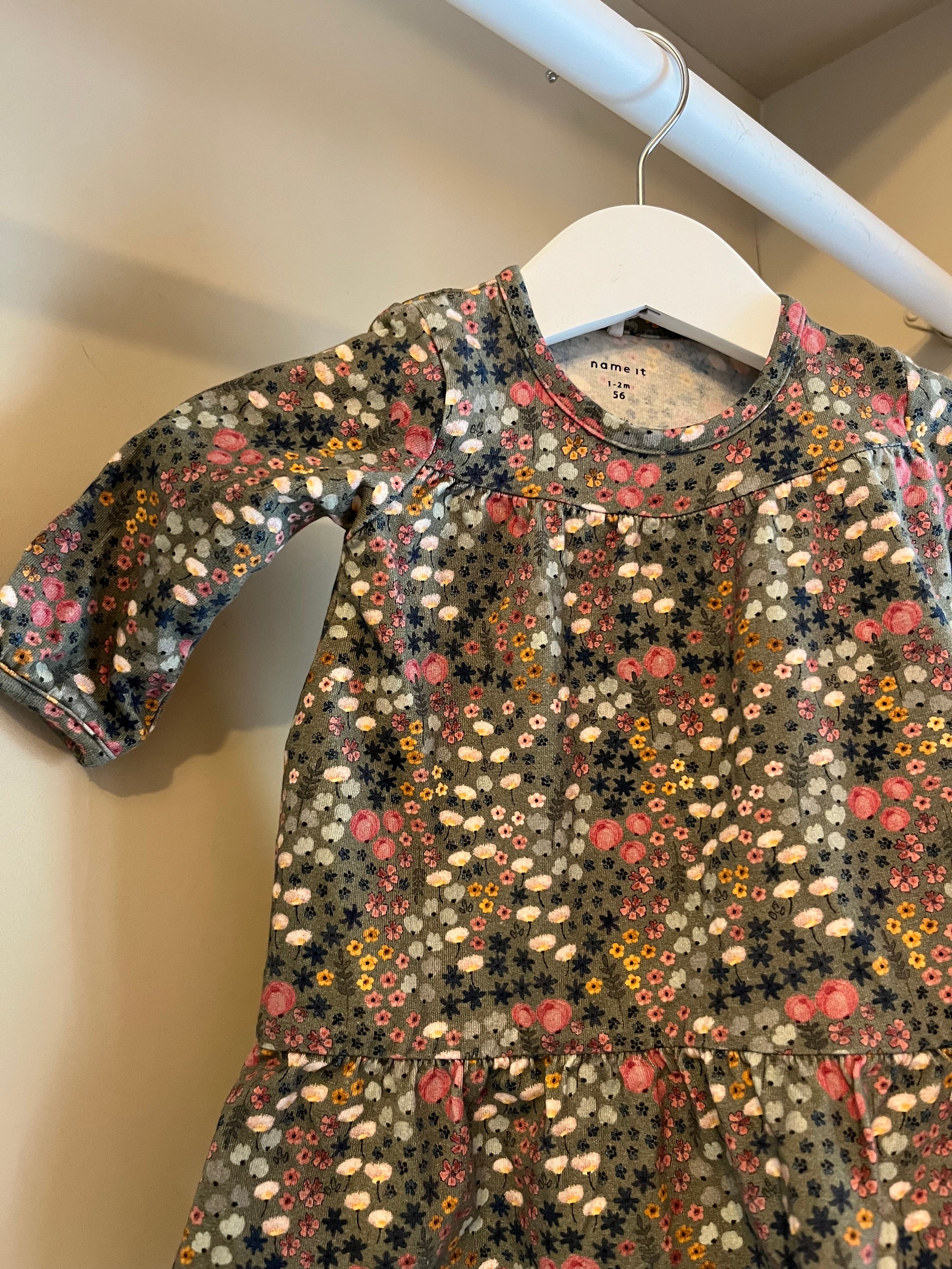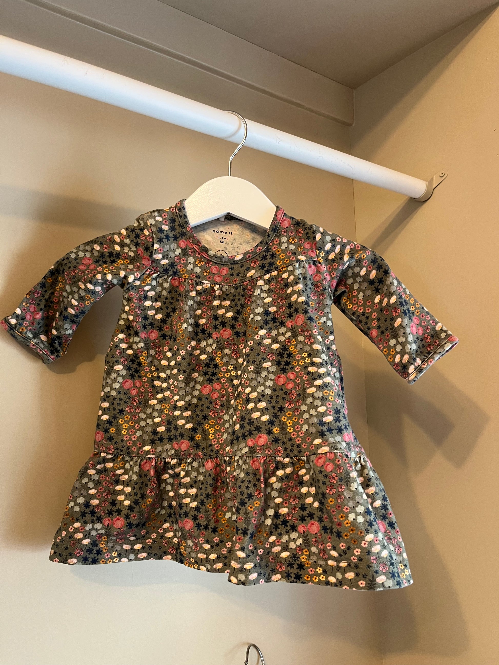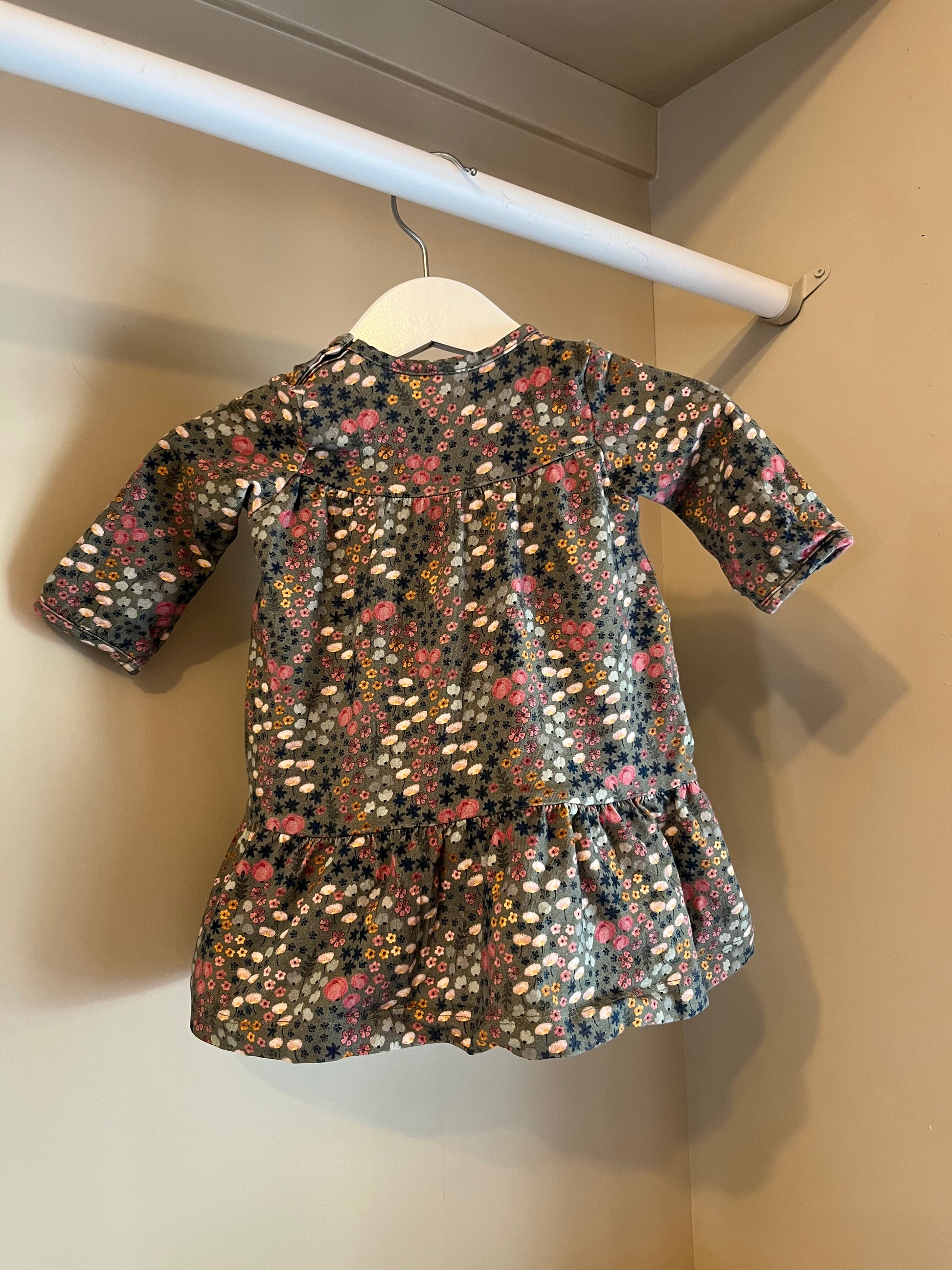 Mjuk och skön klänning i 100% bomull – perfekt för lek och vardag. Klänningen har ett fint mönster i varma höstfärger. Lätt att bära och lika bekväm som fin.