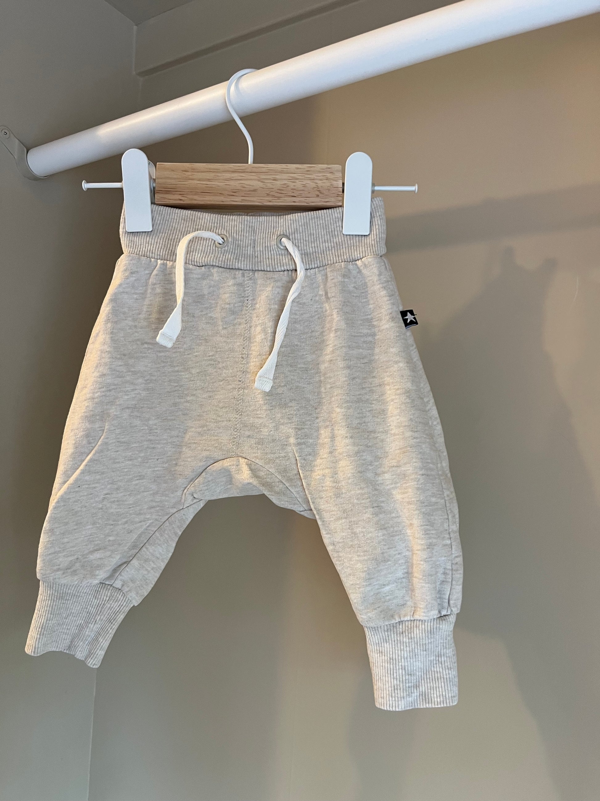 Mjuka och bekväma beige mjukisbyxor med snörning i midjan. Perfekta för lek och vardag.