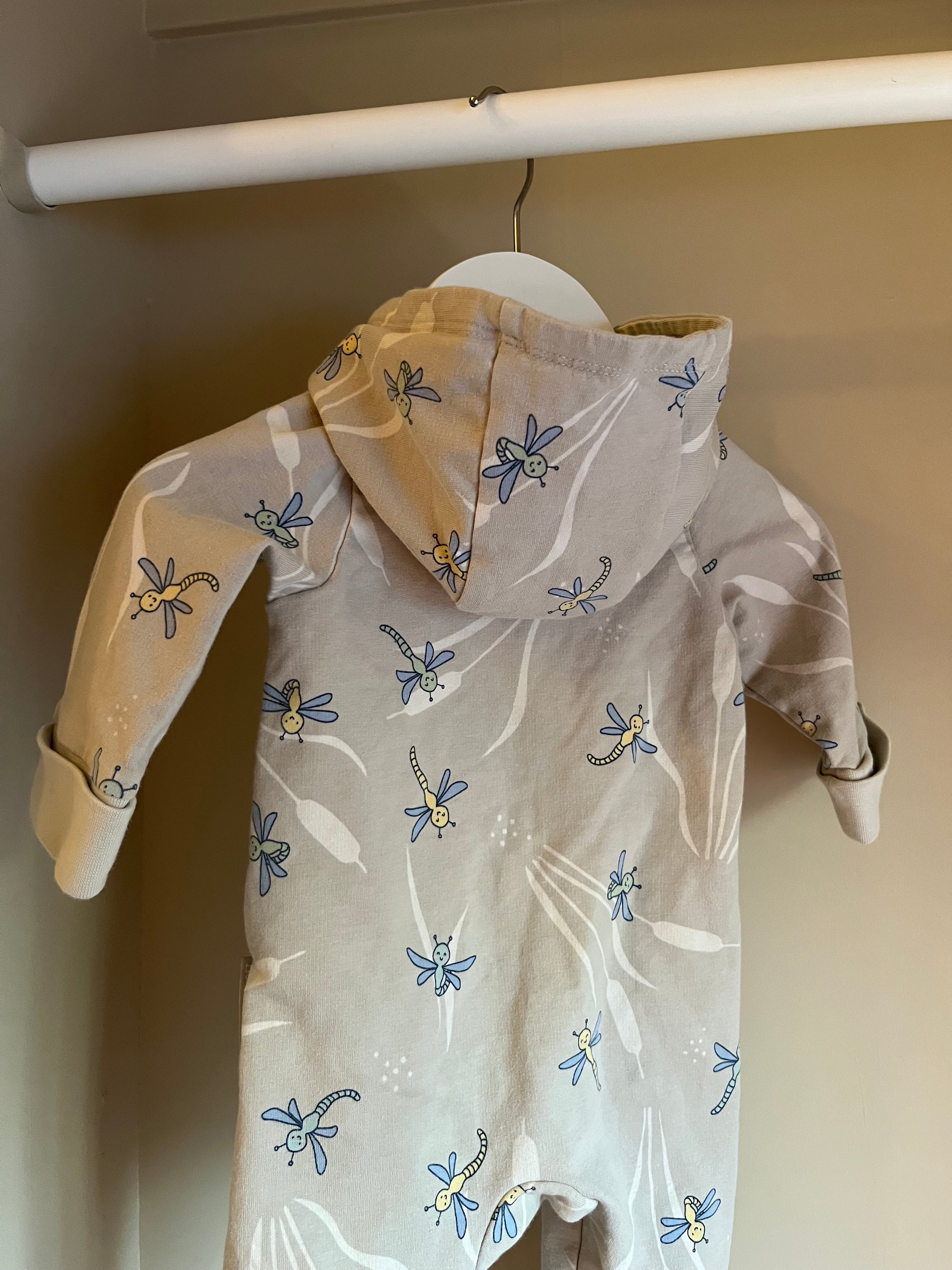 Favoriten för innemyset! Mjuk och skön sweatshirtoverall i beige med luva och dragkedja – perfekt för gosiga dagar hemma, eller att dra över bebisen på våren, sommaren, hösten när det är kyligare.