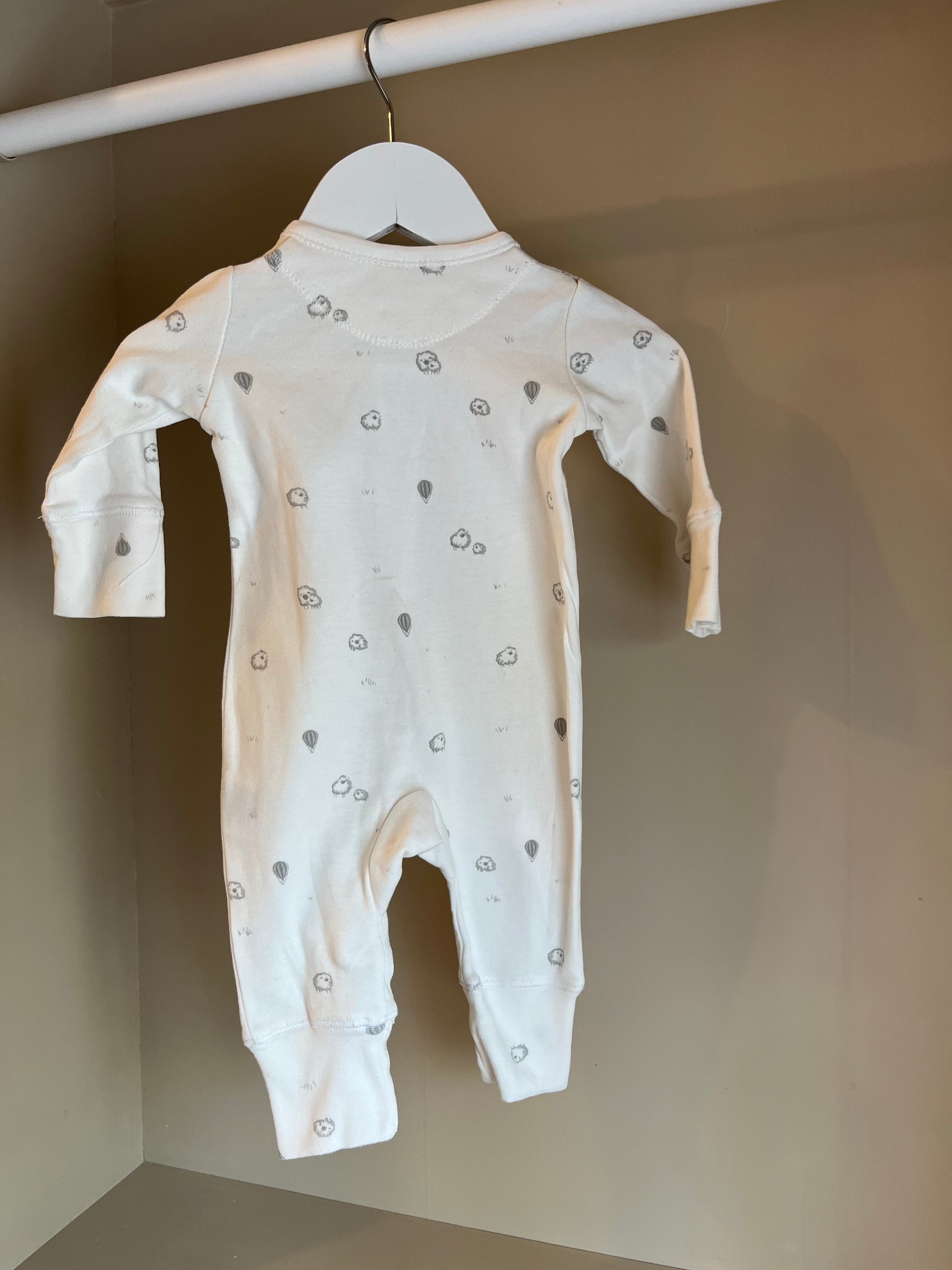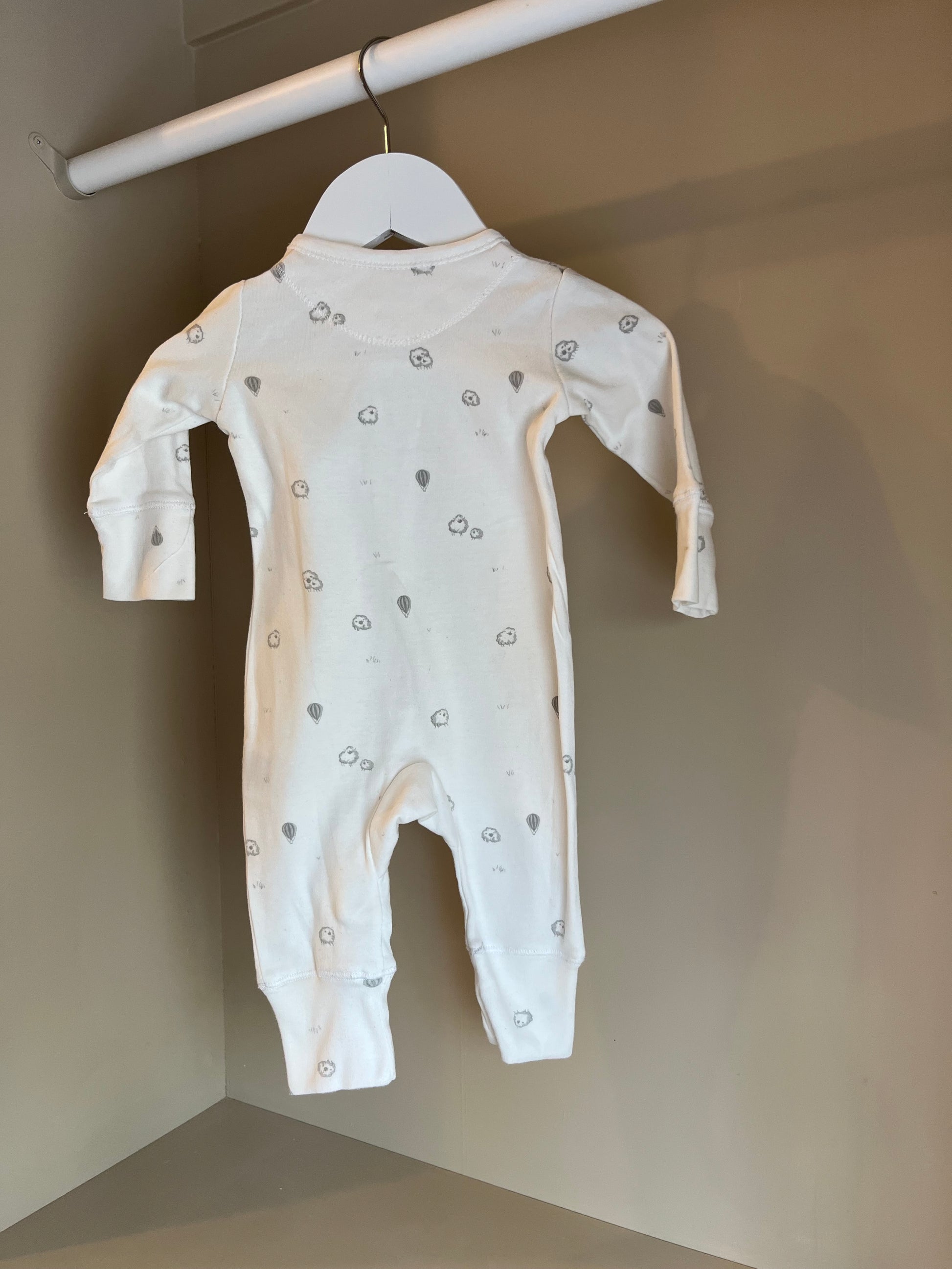 Mjuk och bekväm pyjamas i vitt med sött mönster av gråa får. Praktisk dragkedja framtill gör påklädning enkel – perfekt för nattens alla stunder.