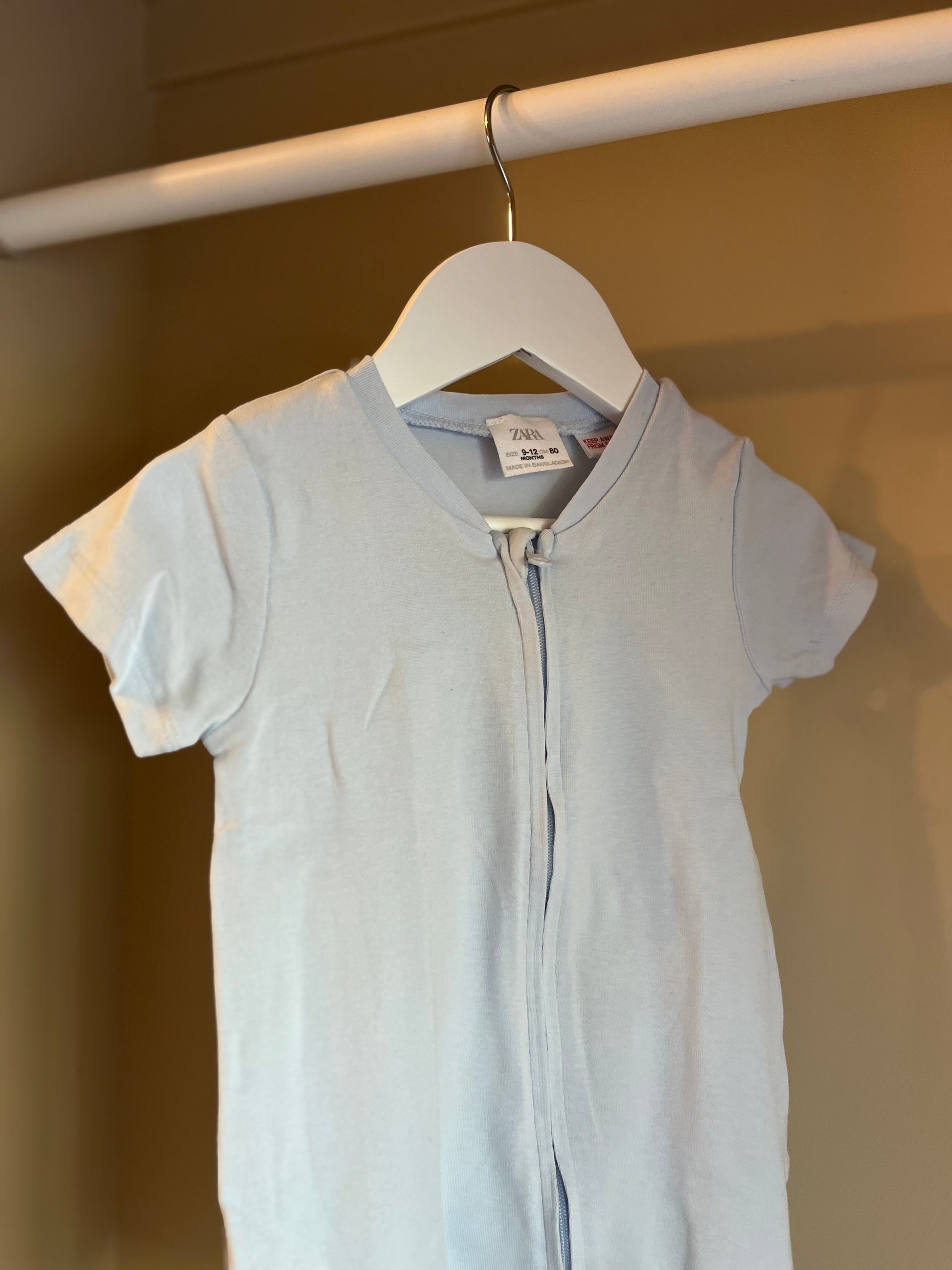 Onepiece-pyjamas i grönblå nyans med korta ärmar och dragkedja framtill. Mjuk och sval – perfekt för varma nätter.