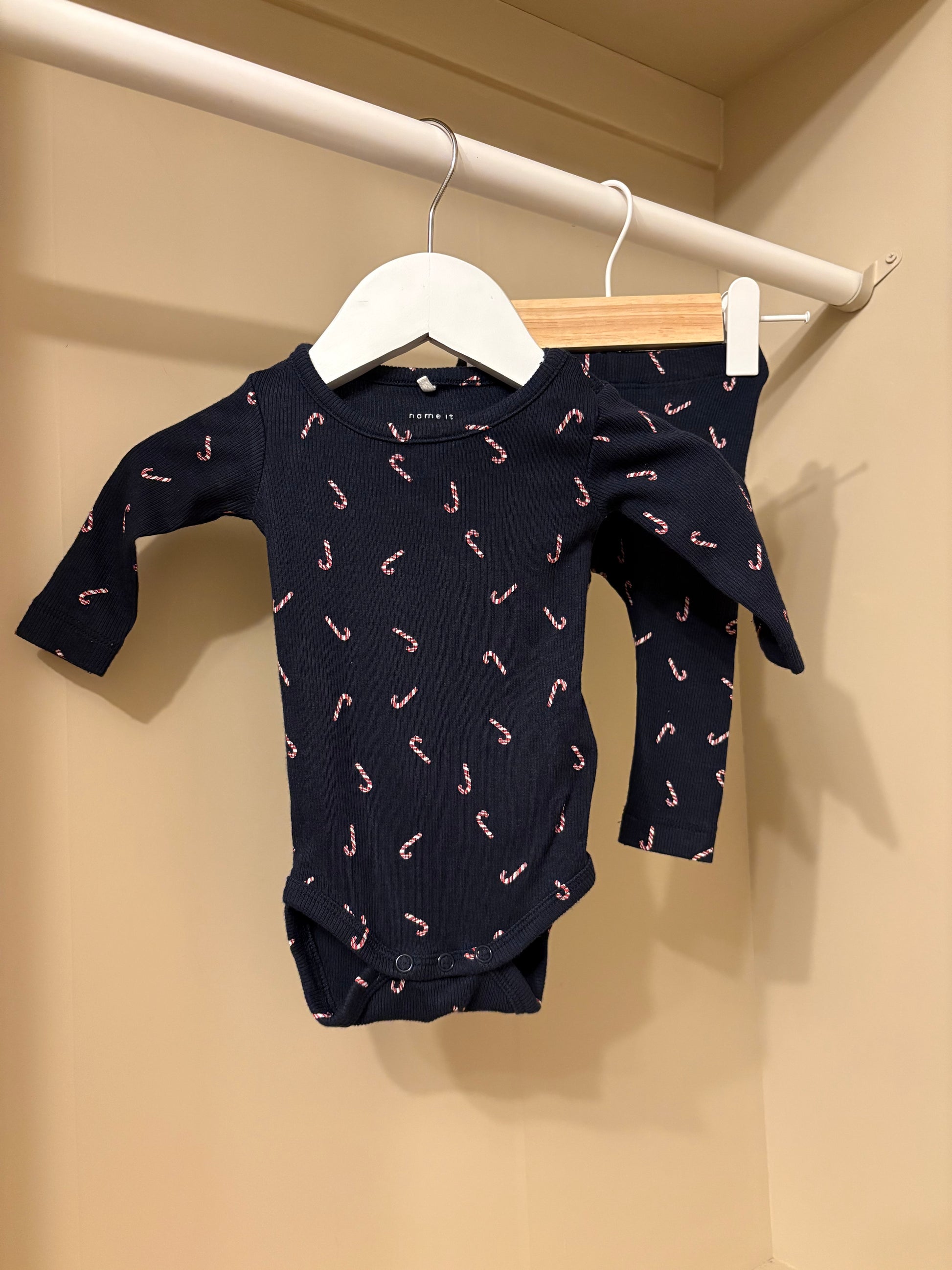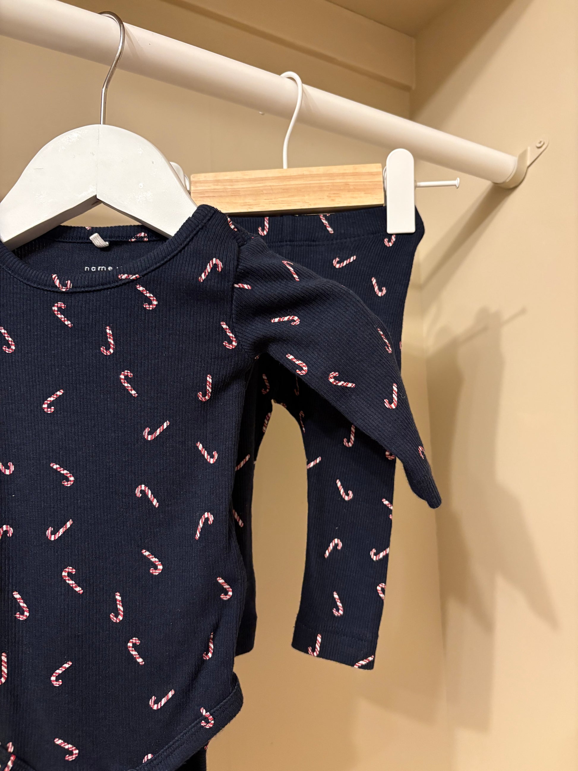 Gulligt set med polkagrisar, perfekt för julmys och vinterdagar. Setet är gjort i ett mjukt och skönt tyg som är behagligt mot huden. Ett riktigt charmigt julset som både är bekvämt och festligt.