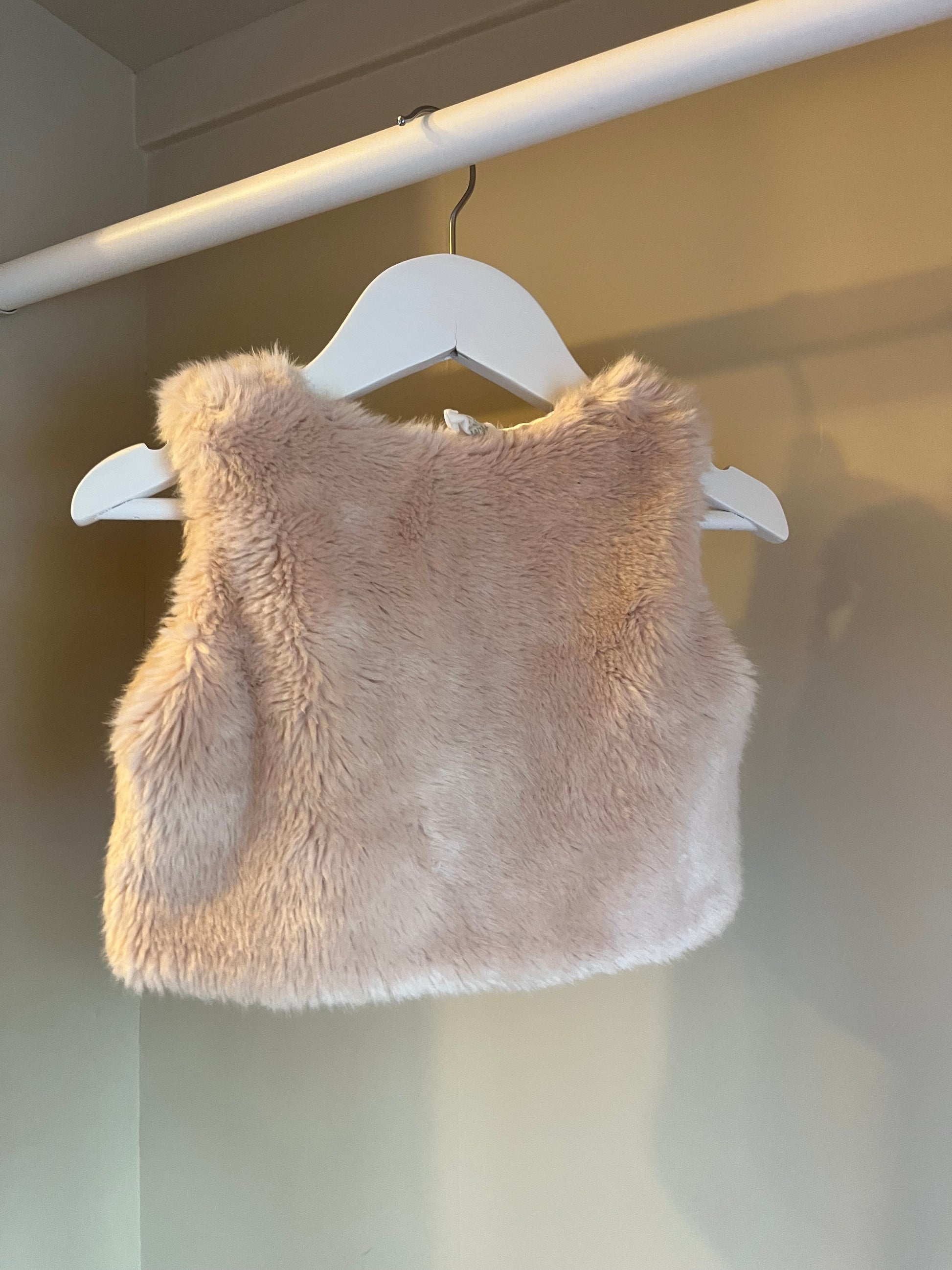 En underbart gosig väst i fuskpäls som håller din minsting varm och stilsäker. Den ljusrosa tonen ger ett sött uttryck, medan det mjuka materialet gör den perfekt för kyliga dagar. Lätt att ta på med praktisk stängning och skön passform.